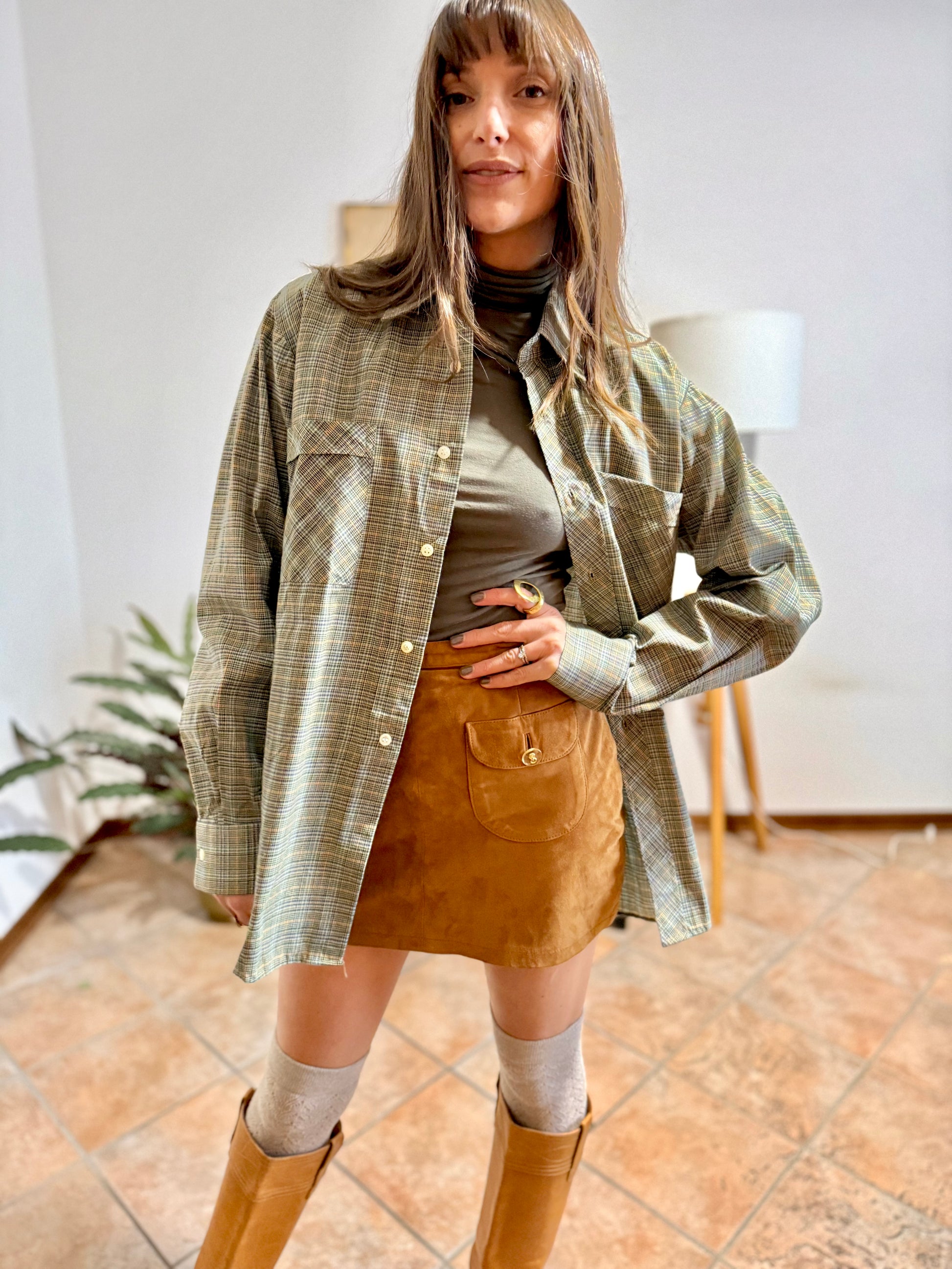 1970's vintage oversize brown, yellow and khaki plaid woven shirt
