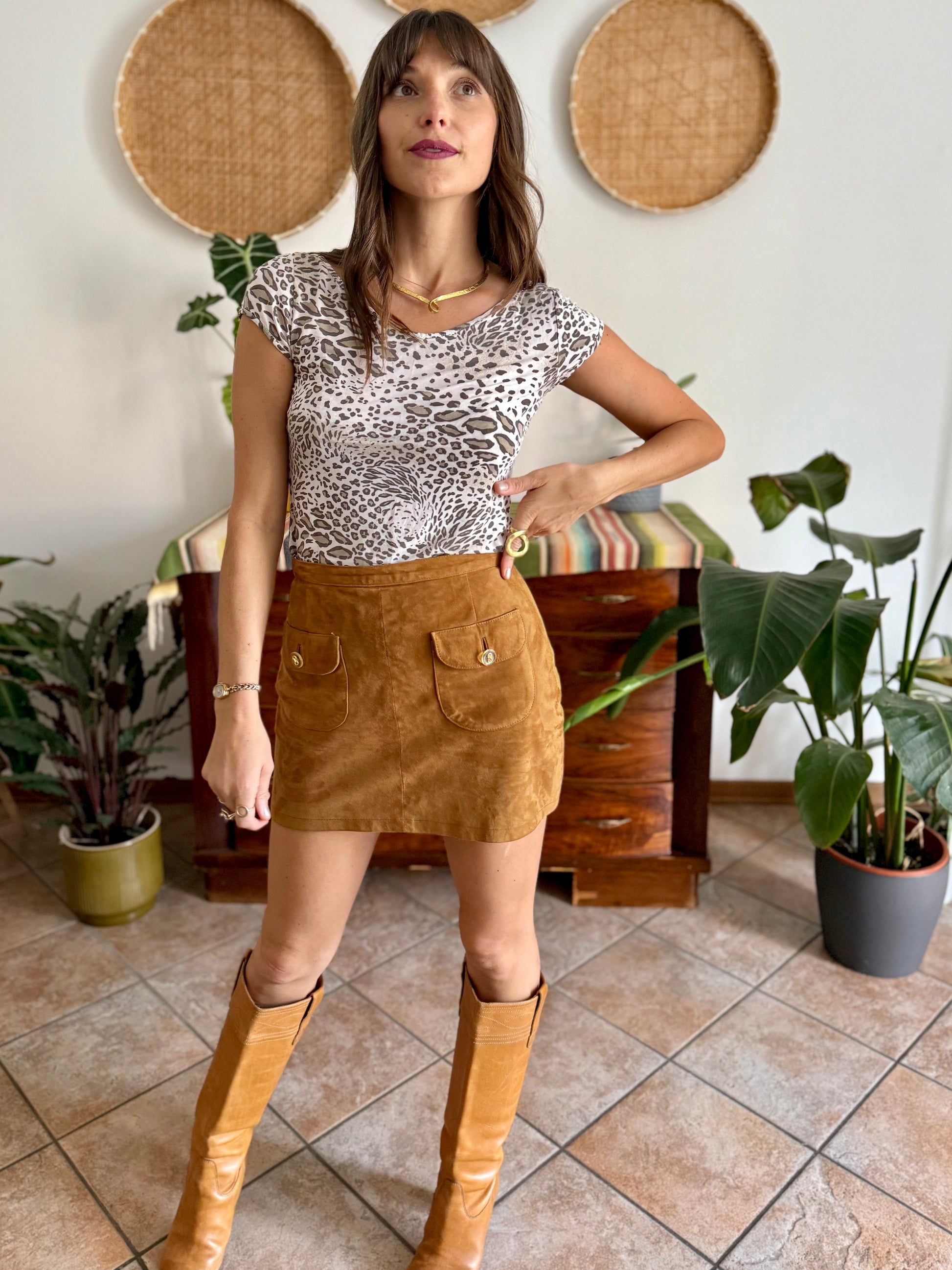 100% nylon. Cream with tan and grey animal print. Stretch fit. Made in Italy. Size M (shoulders 44cm, bust 46cm, total length 48cm) all measurements taken flat from seam to seam